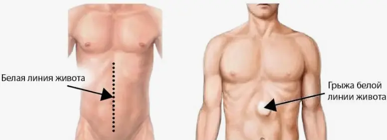 Эпигастральная грыжа (грыжа белой линии живота) — это патология, при которой внутренние органы (сальник, петли кишечника) выходят через дефект в апоневрозе передней брюшной стенки. Белая линия живота образована переплетением сухожилий прямых мышц и в норме имеет ширину до 2,5 см. При расхождении волокон (диастазе) формируются грыжевые ворота, через которые происходит выпячивание.
