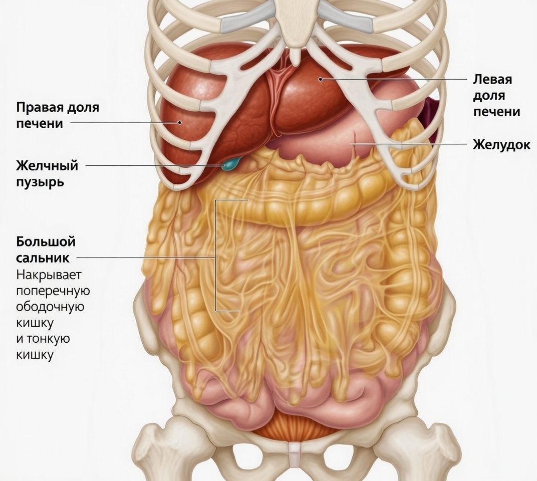 Удаление большого сальника (оментэктомия) — операция, при которой удаляется часть или весь большой сальник — своеобразная складка брюшины, выполняющая защитную роль в организме. Берущий начало от большой кривизны желудка, пересекая поперечно-ободочную кишку, достигая лонного сочленения, справа соприкасаясь с печенью, слева — с селезенкой, спереди — прилежащий к париетальной брюшине, сзади — к органам брюшной полости, большой сальник выполняет несколько полезных функций. Он защищает органы брюшной полости от травм и воспалительных процессов, в нем содержится иммунные клетки и лимфоузлы, необходимые для иммунитета и т. д. Почему же столь значимая структура в организме подлежит удалению?