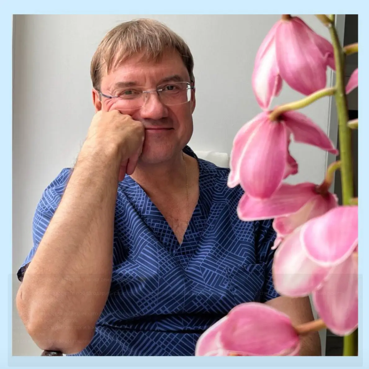 От всей души желаю Вам крепкого здоровья, счастья, вдохновения и сил для дальнейших свершений. Пусть каждый пациент приносит радость благодарности, коллеги ценят Ваше мастерство, а близкие окружают заботой и любовью. Желаю гармонии, благополучия и ярких моментов, наполняющих жизнь смыслом и радостью.